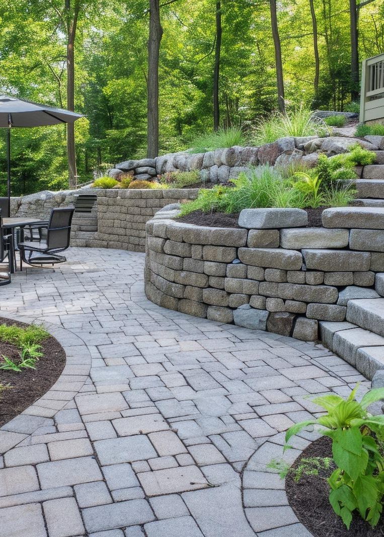 Terrassenanlagen, als Erholungsort, oder Feierlichkeiten. Bei der Gestaltung in Größen und Materialien sind keine Grenzen gesetzt.
