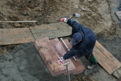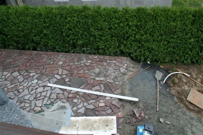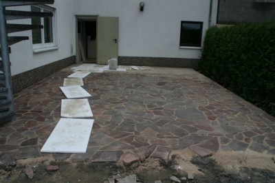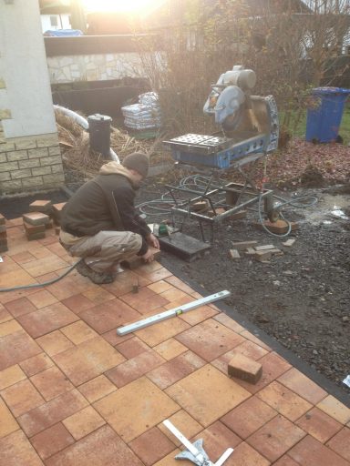 Herstellung mit schönem "Sunset" Pflastersteinen in Mehrgrößen