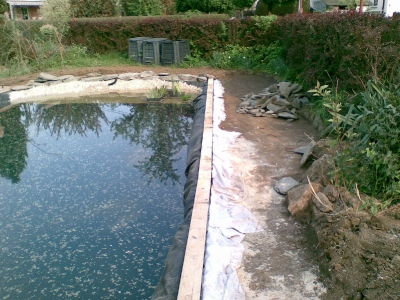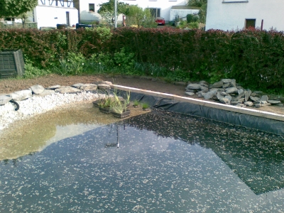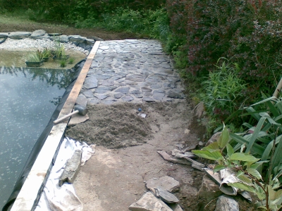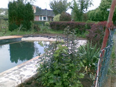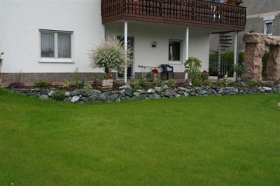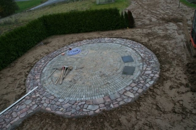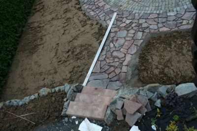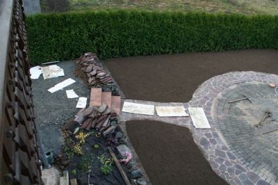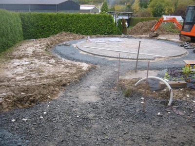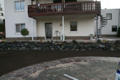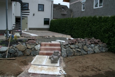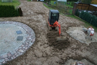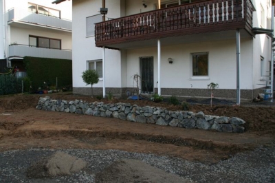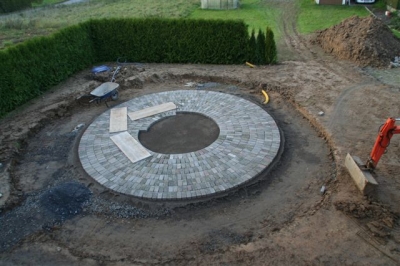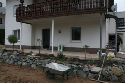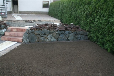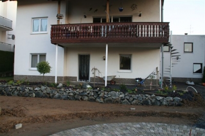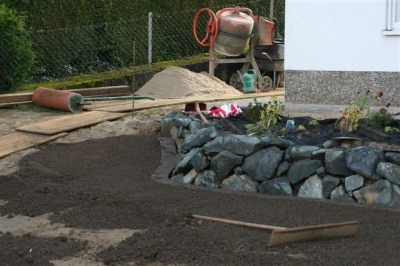 von dem ausheben der Baugrube bis zur Umrandung mit Naturstein und Douglasie