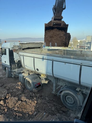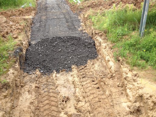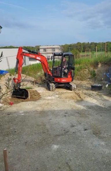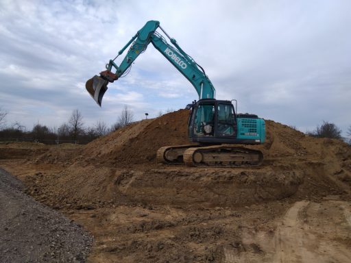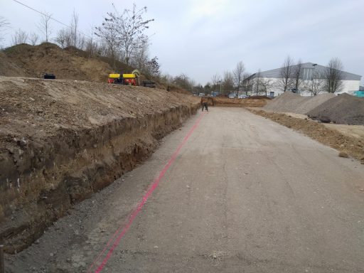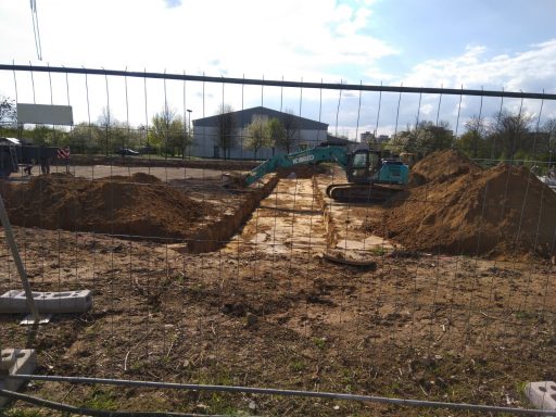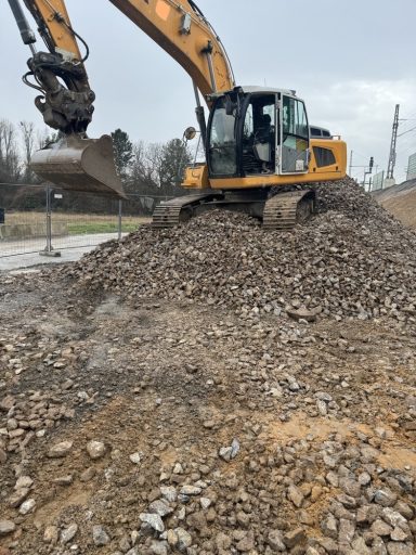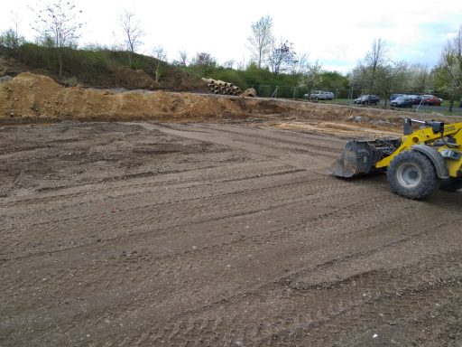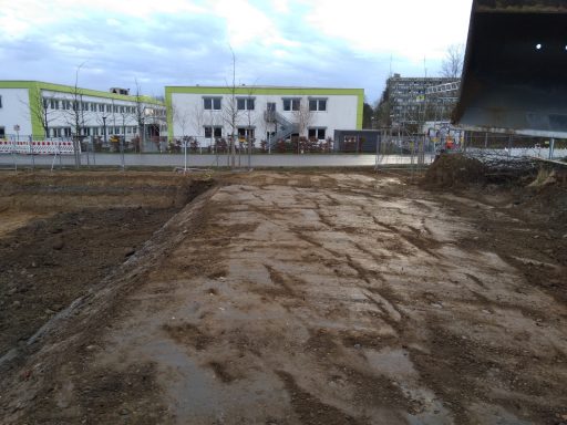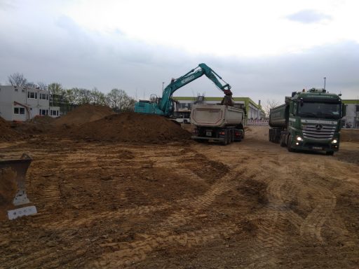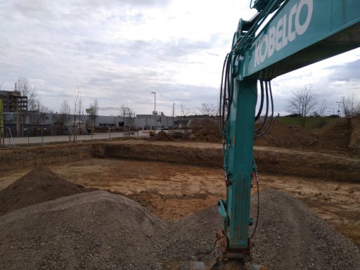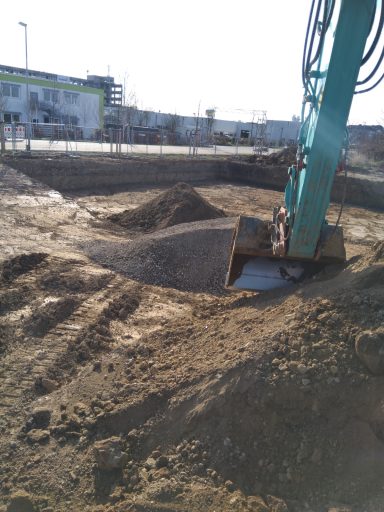 ausheben der komplette Baugrube, herstellen der Fundamente für Betonstützen, einbauen von Tragschichten aus RCL (Recycling)