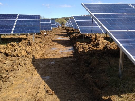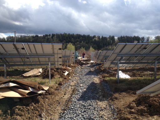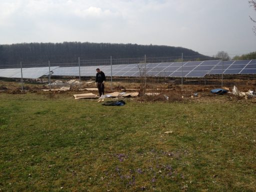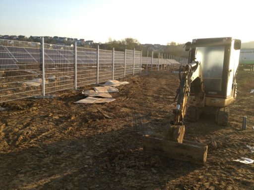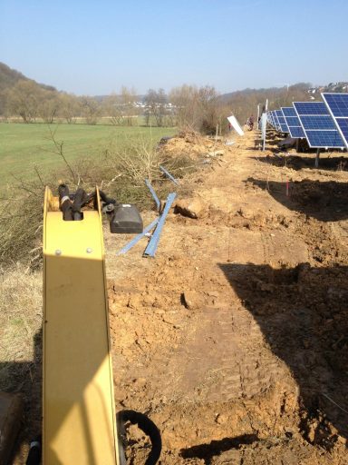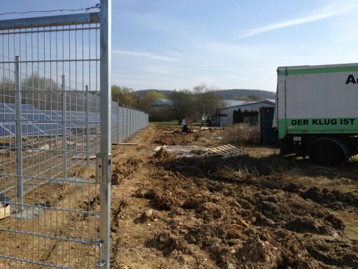 von der Rodung, über die Planierung der Fläche, ausheben und verfüllen der Kabelgräben, baggern der Baugrube für die Übergabestation, bis zur Herstellung von 2300m Stabgitterzaun mit großen Tor