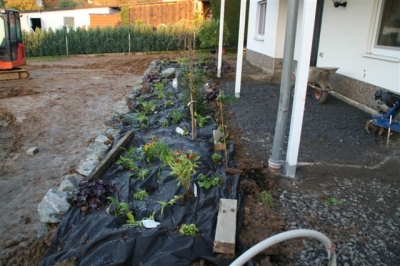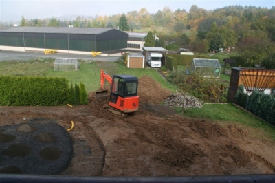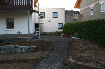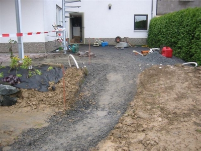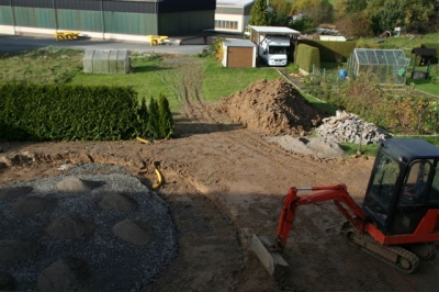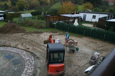 Außenanlage vorher und während der Fertigung