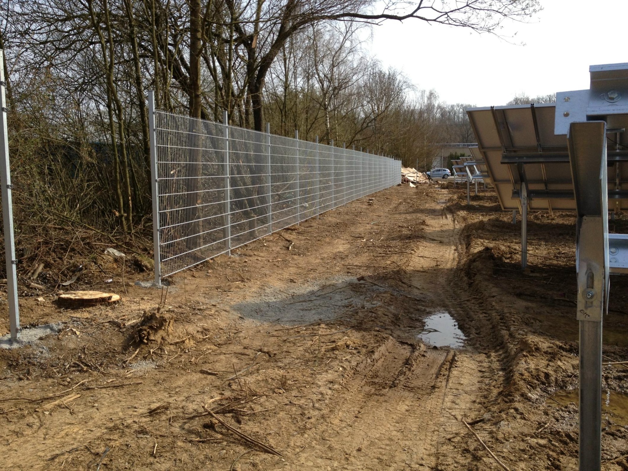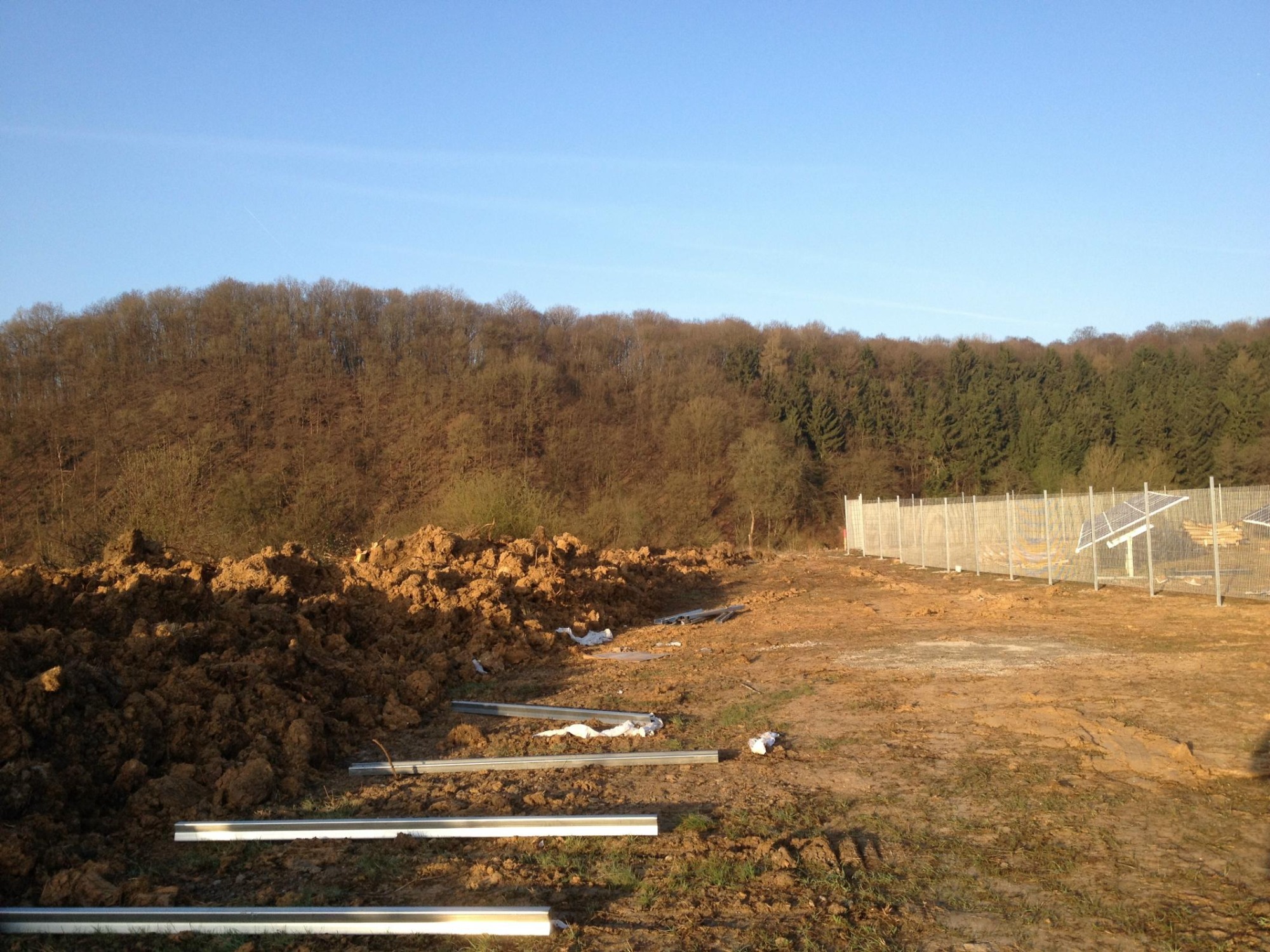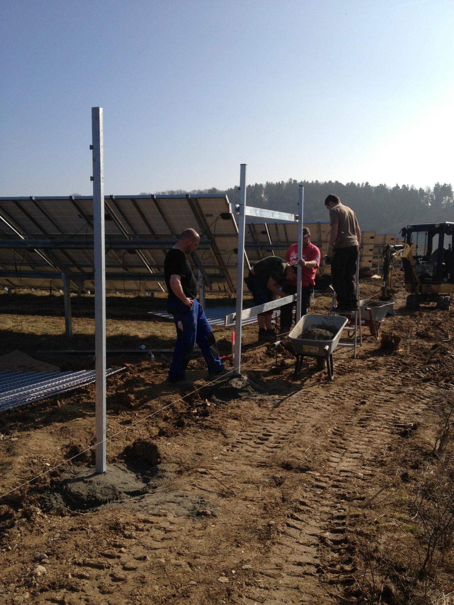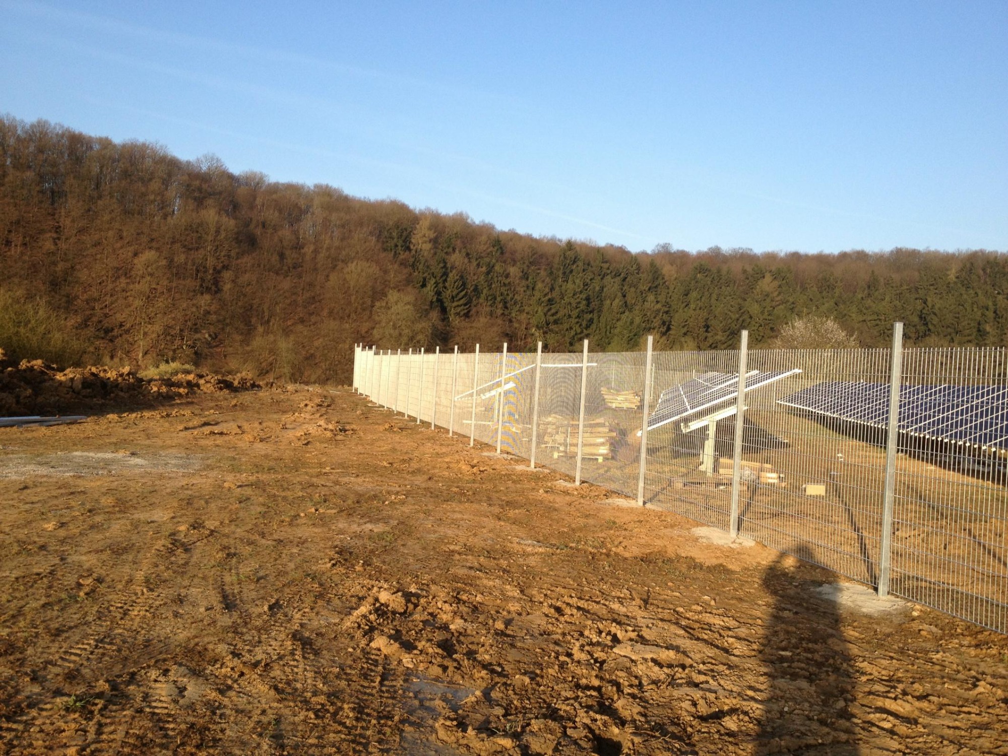 von der Rodung, über die Planierung der Fläche, ausheben und verfüllen der Kabelgräben, baggern der Baugrube für die Übergabestation, bis zur Herstellung von 2300m Stabgitterzaun mit großen Tor