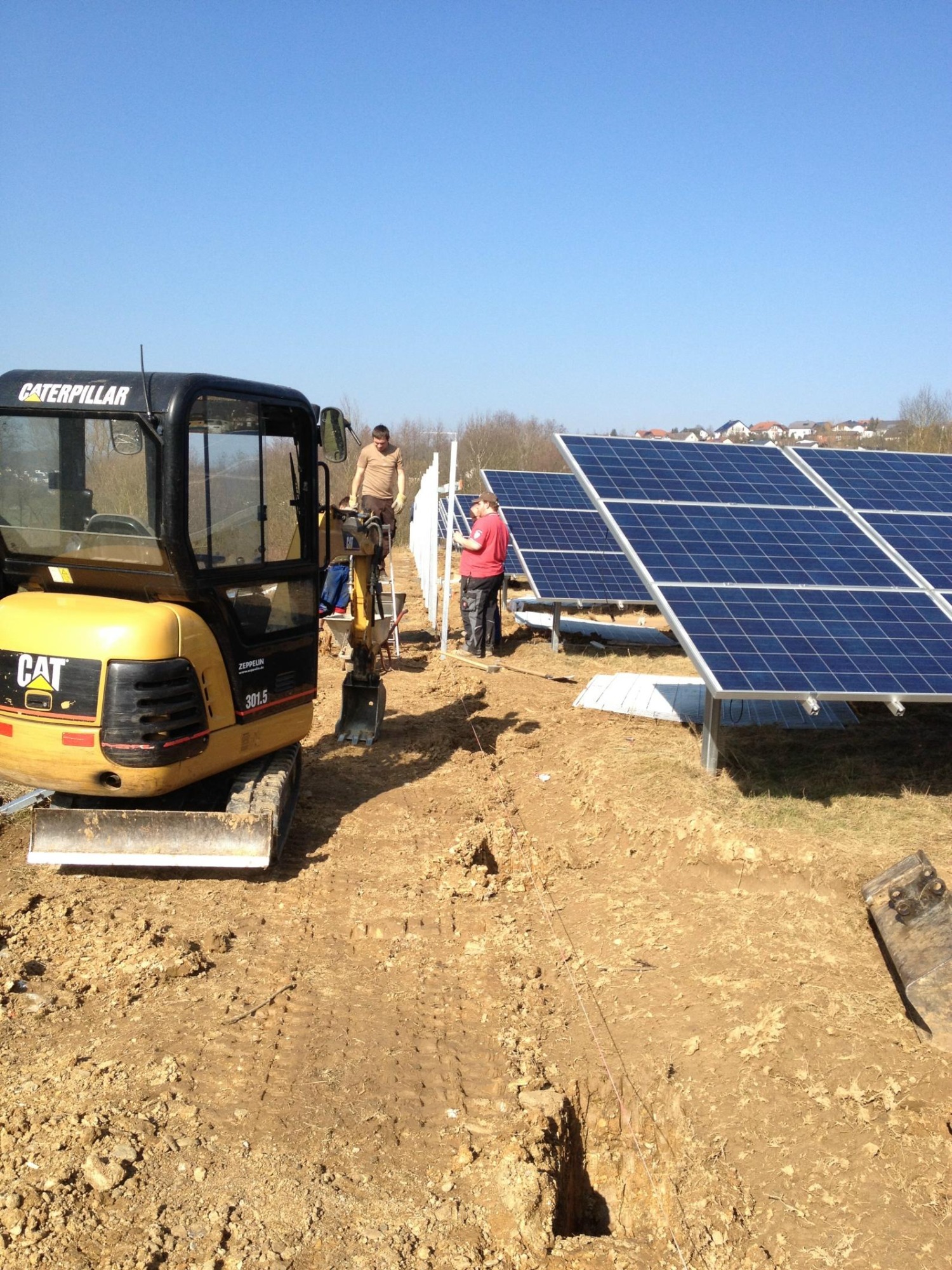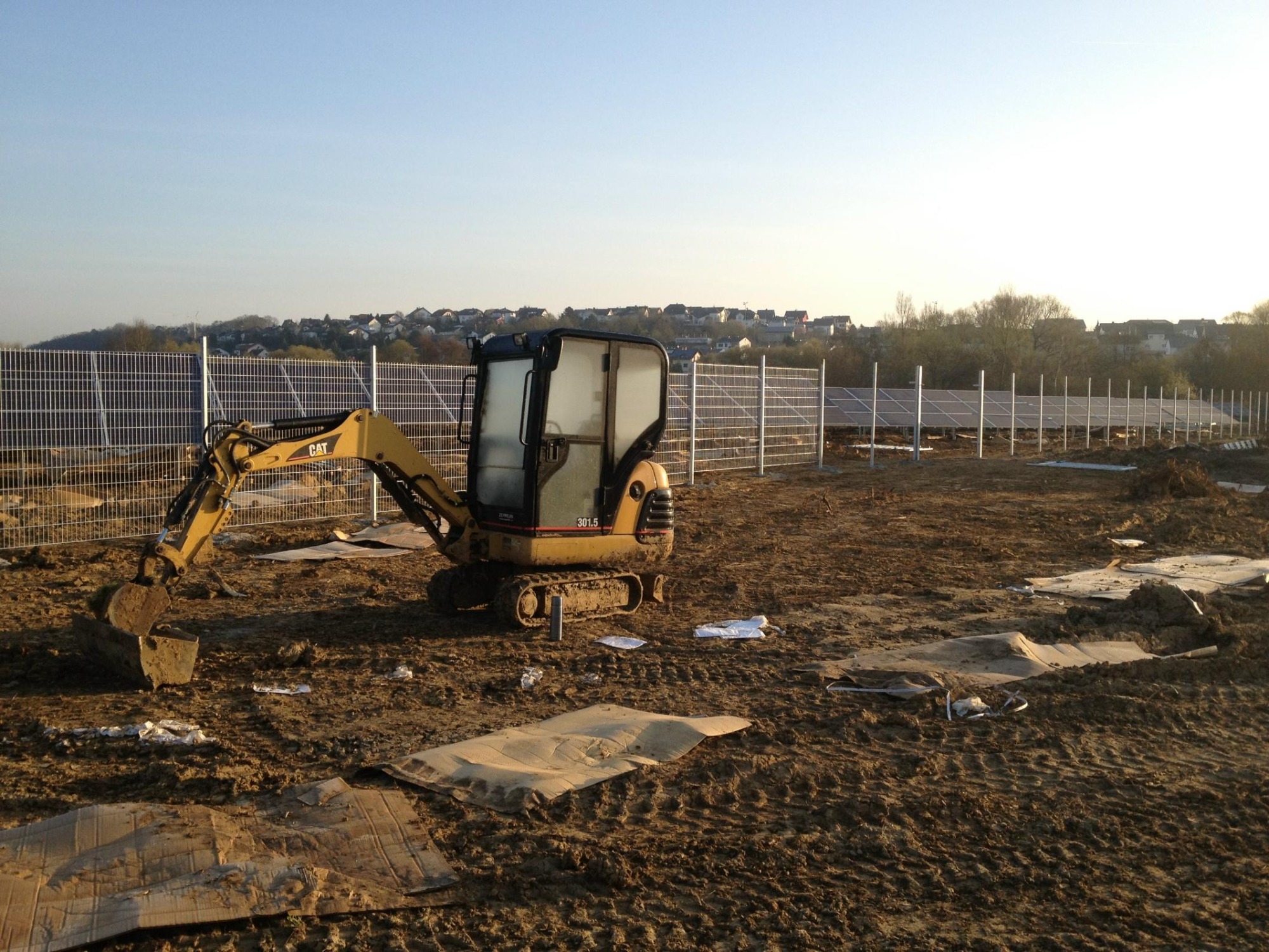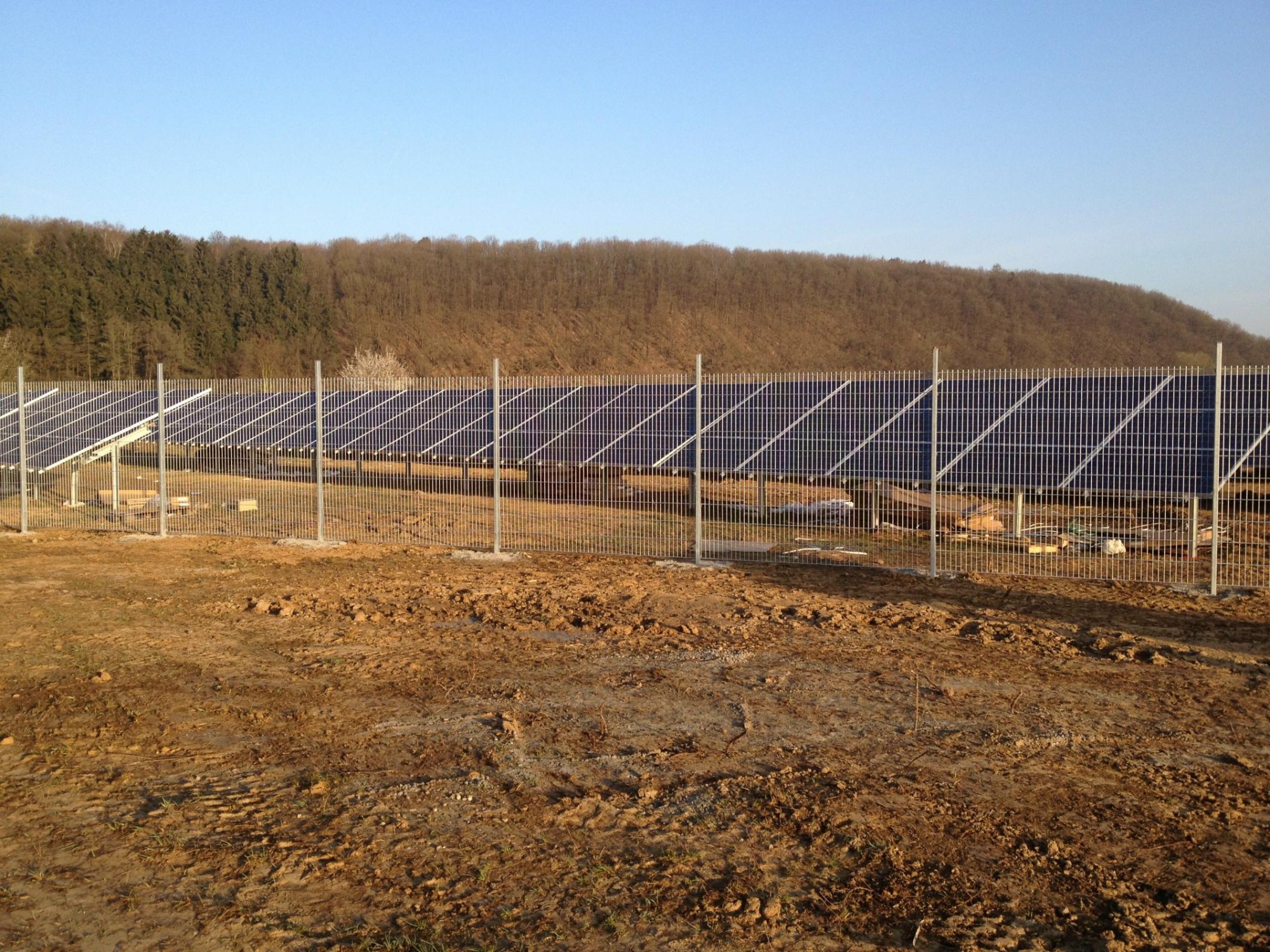 von der Rodung, über die Planierung der Fläche, ausheben und verfüllen der Kabelgräben, baggern der Baugrube für die Übergabestation, bis zur Herstellung von 2300m Stabgitterzaun mit großen Tor