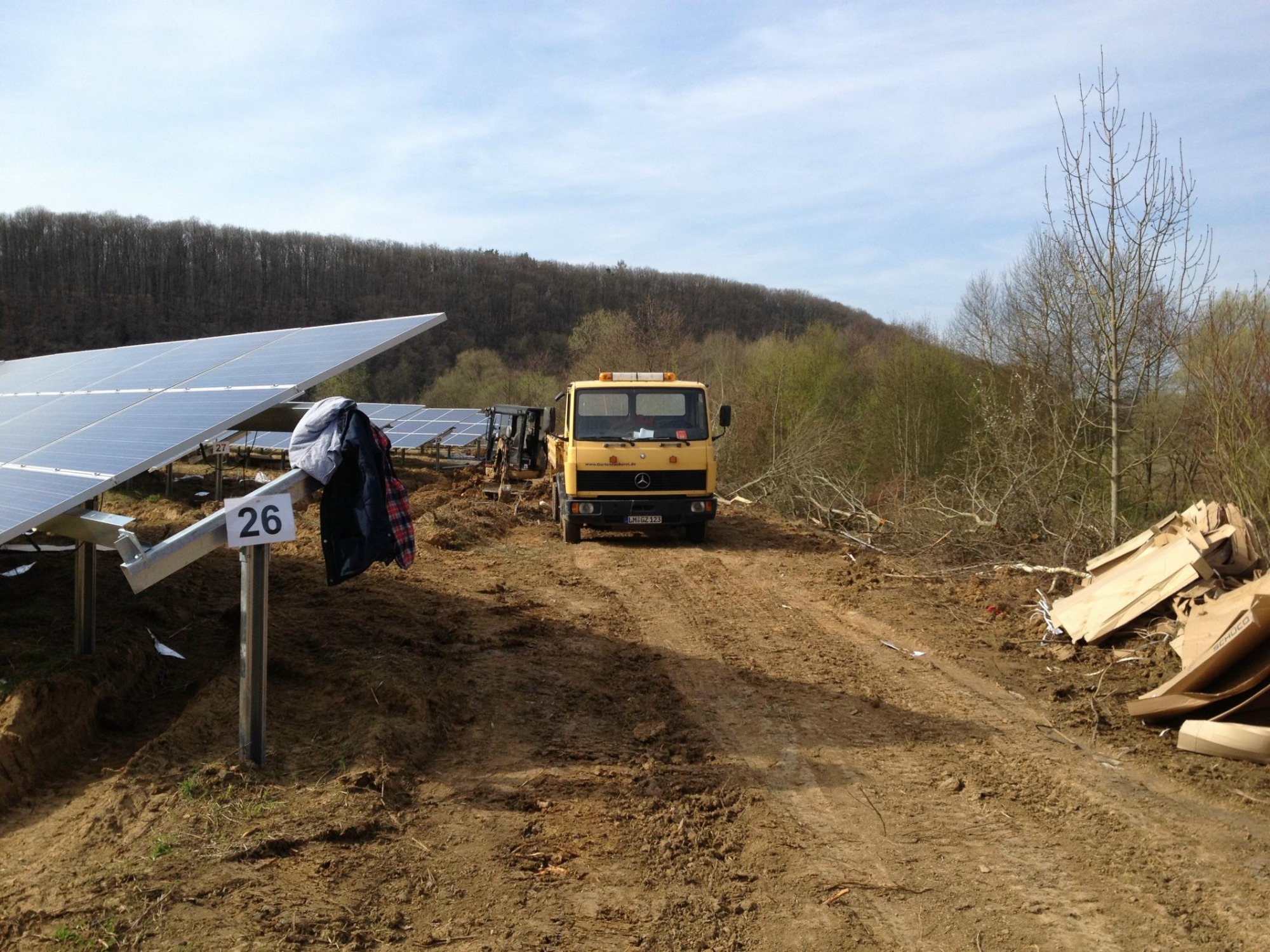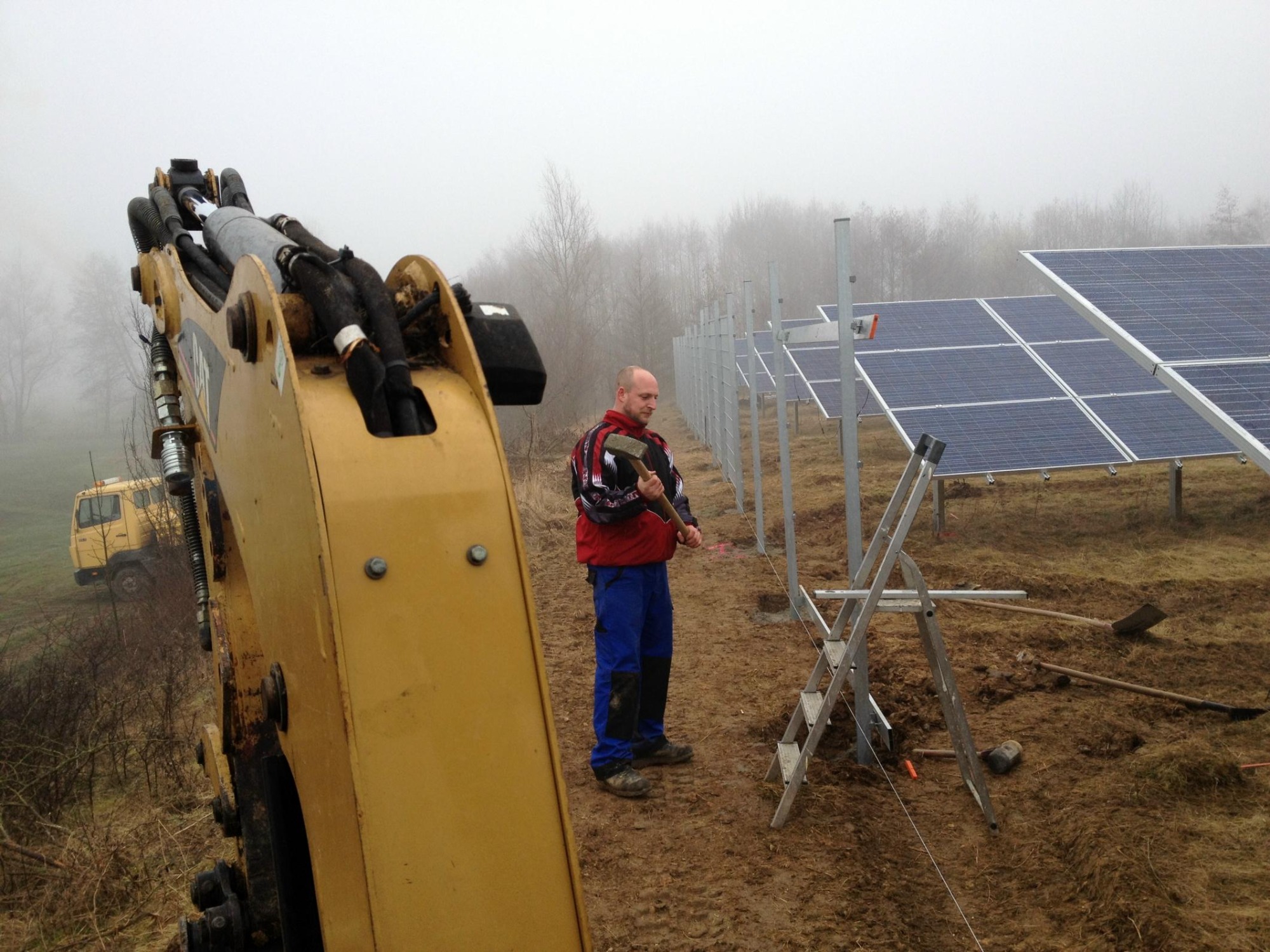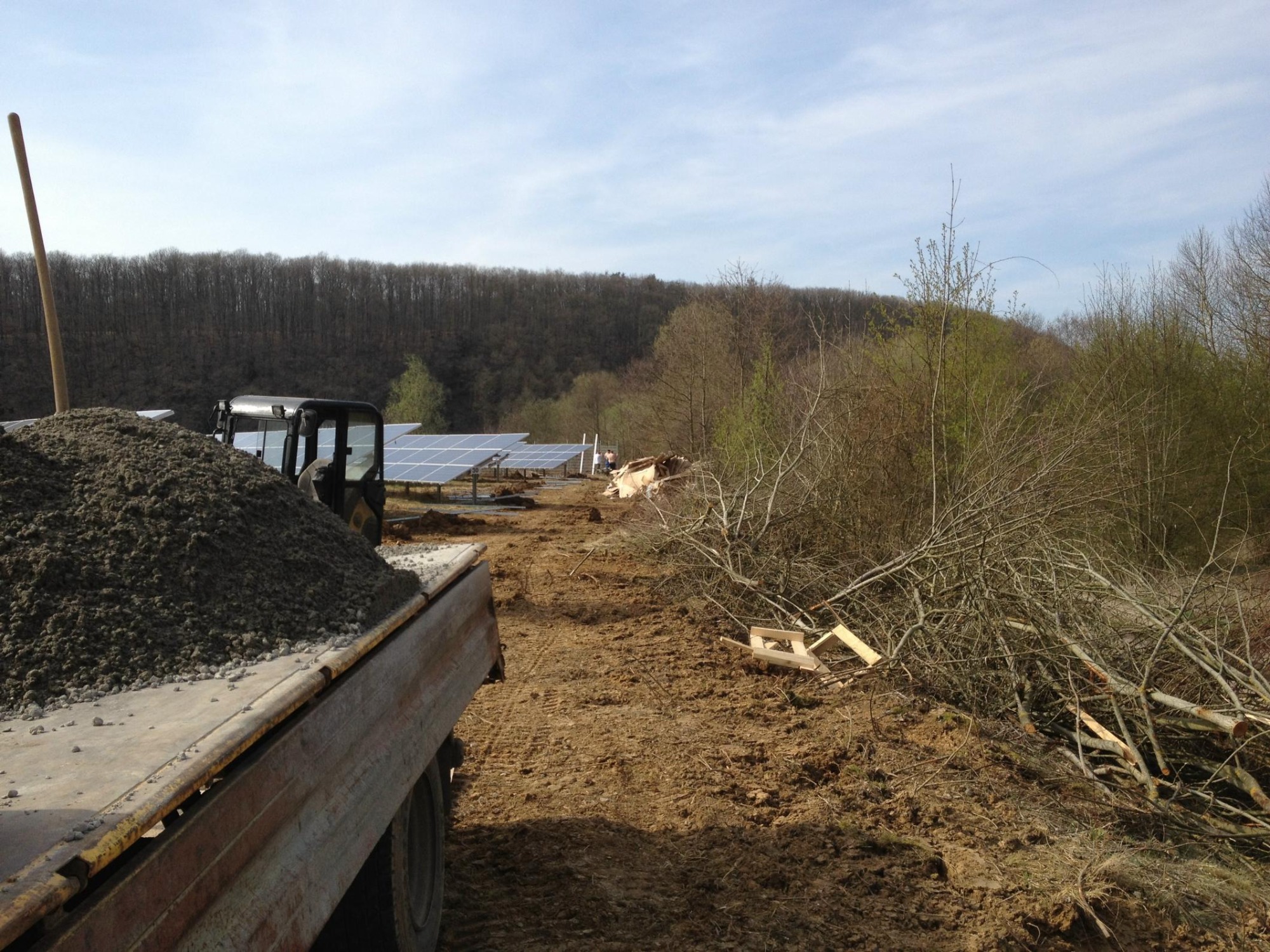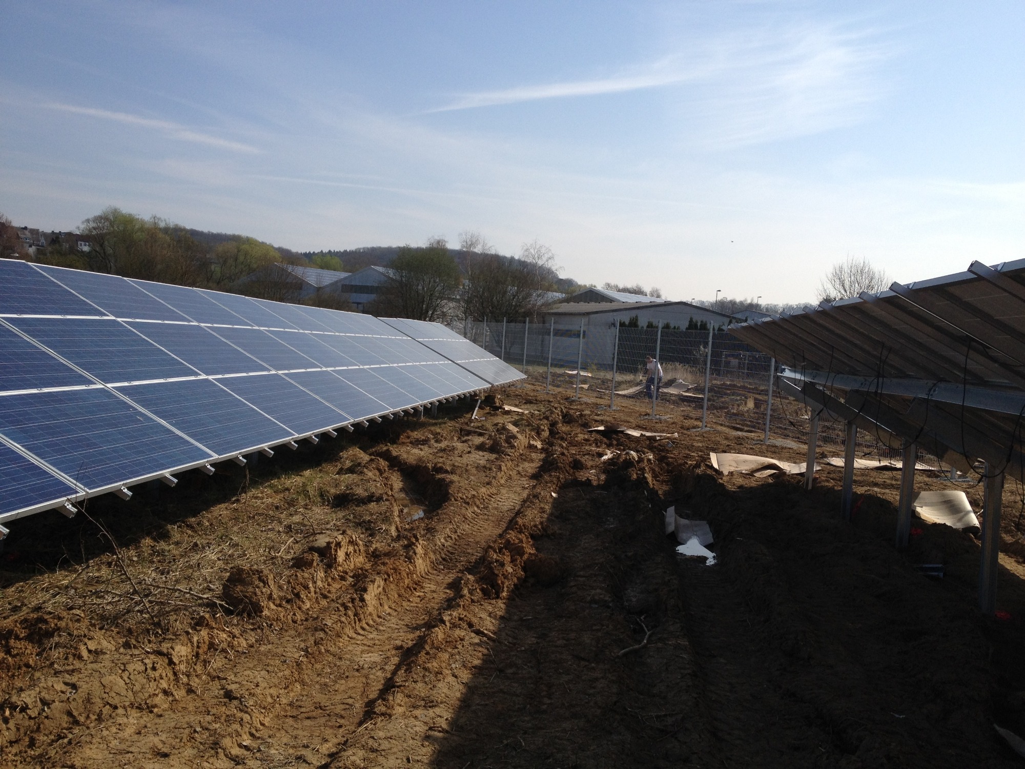 von der Rodung, über die Planierung der Fläche, ausheben und verfüllen der Kabelgräben, baggern der Baugrube für die Übergabestation, bis zur Herstellung von 2300m Stabgitterzaun mit großen Tor