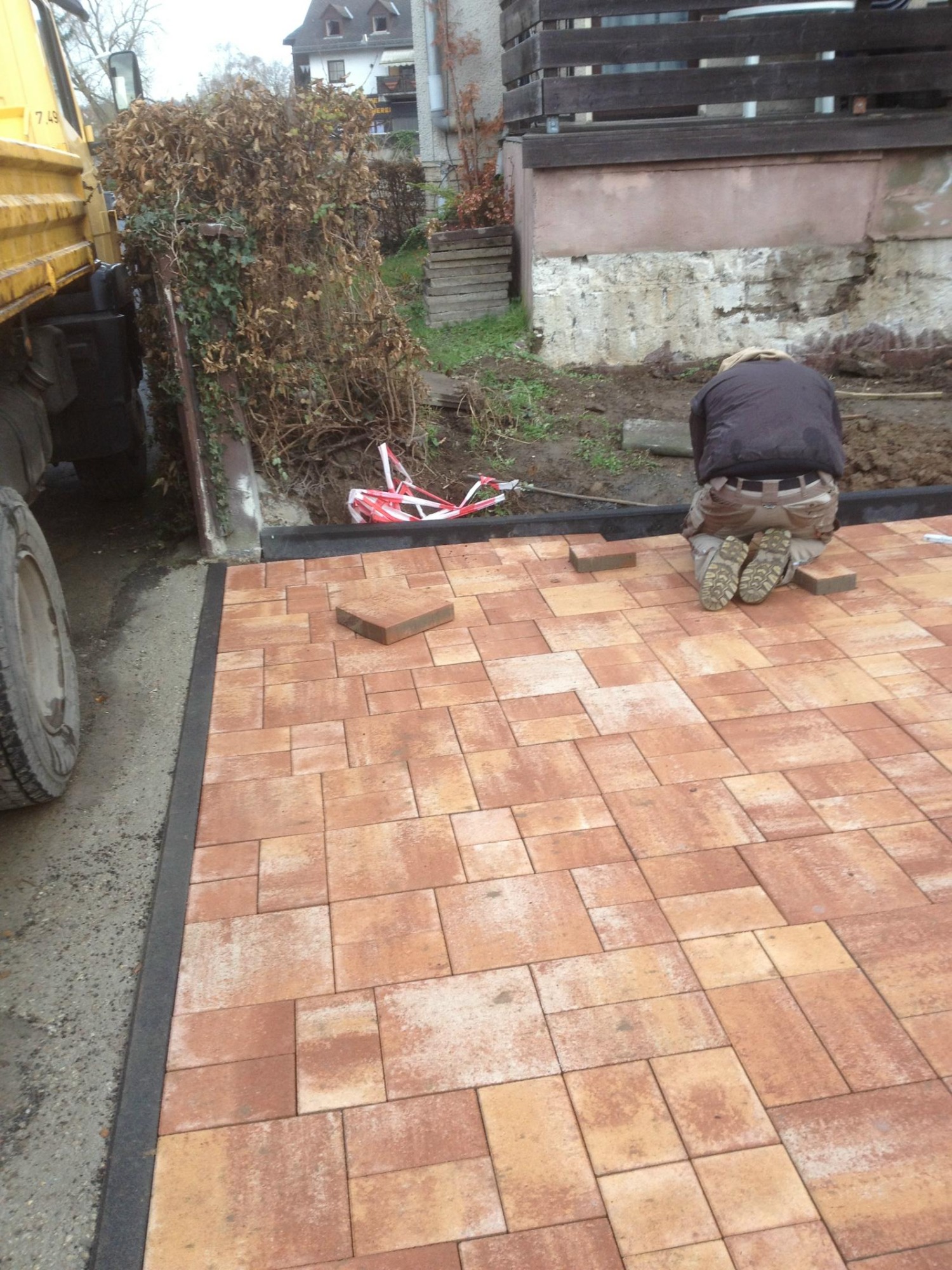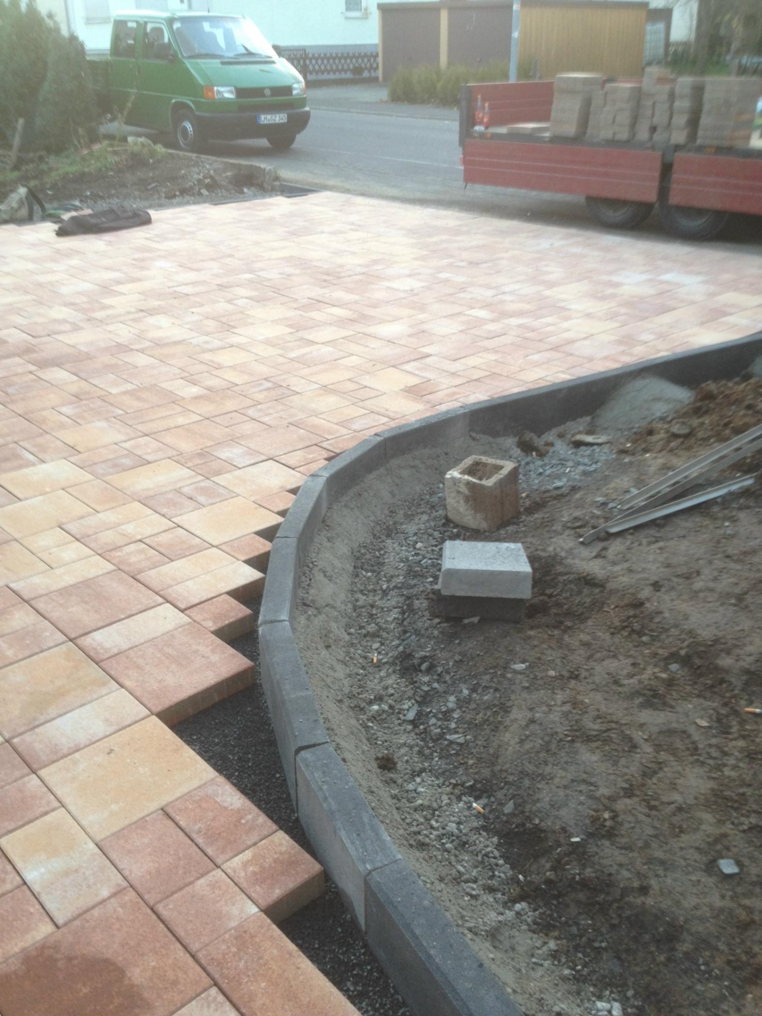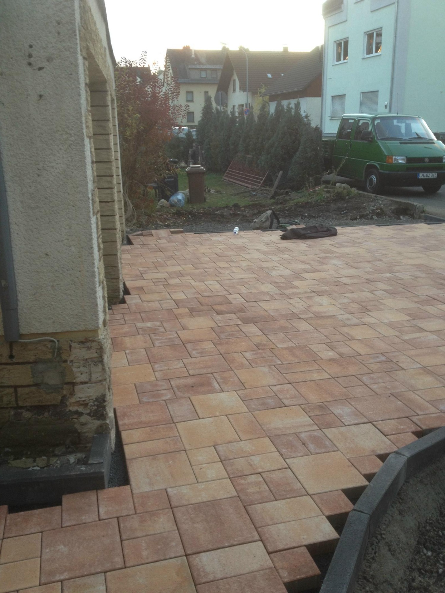 Herstellung mit schönem "Sunset" Pflastersteinen in Mehrgrößen