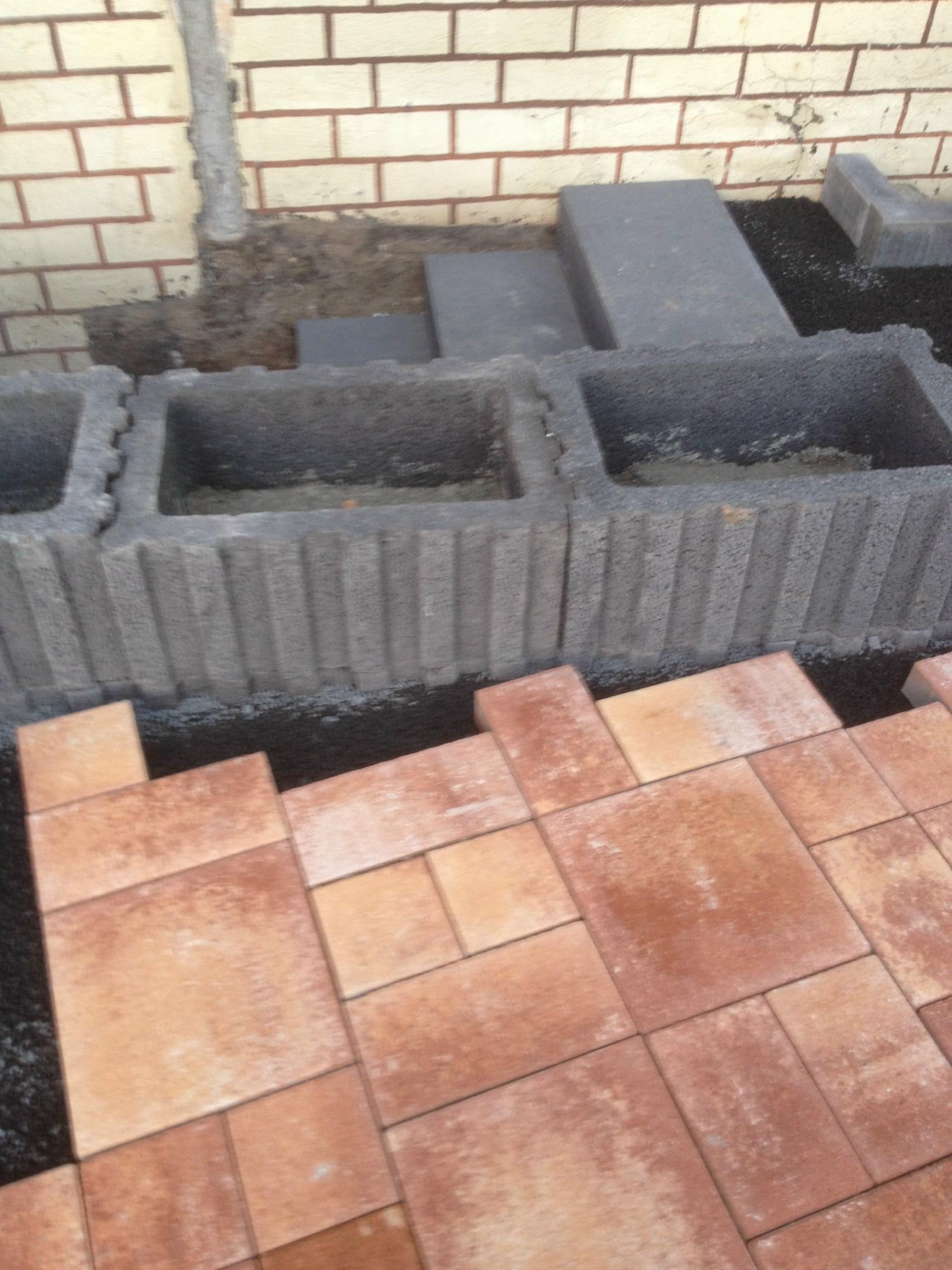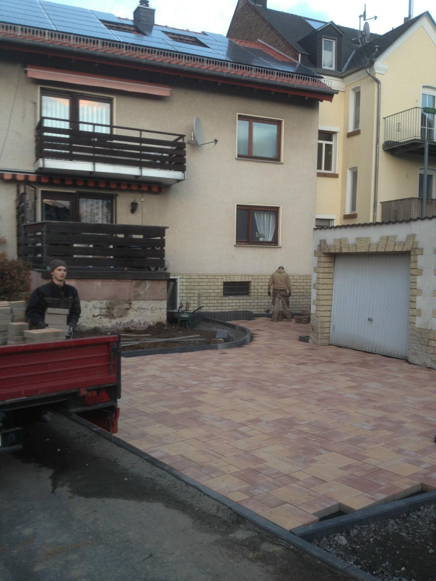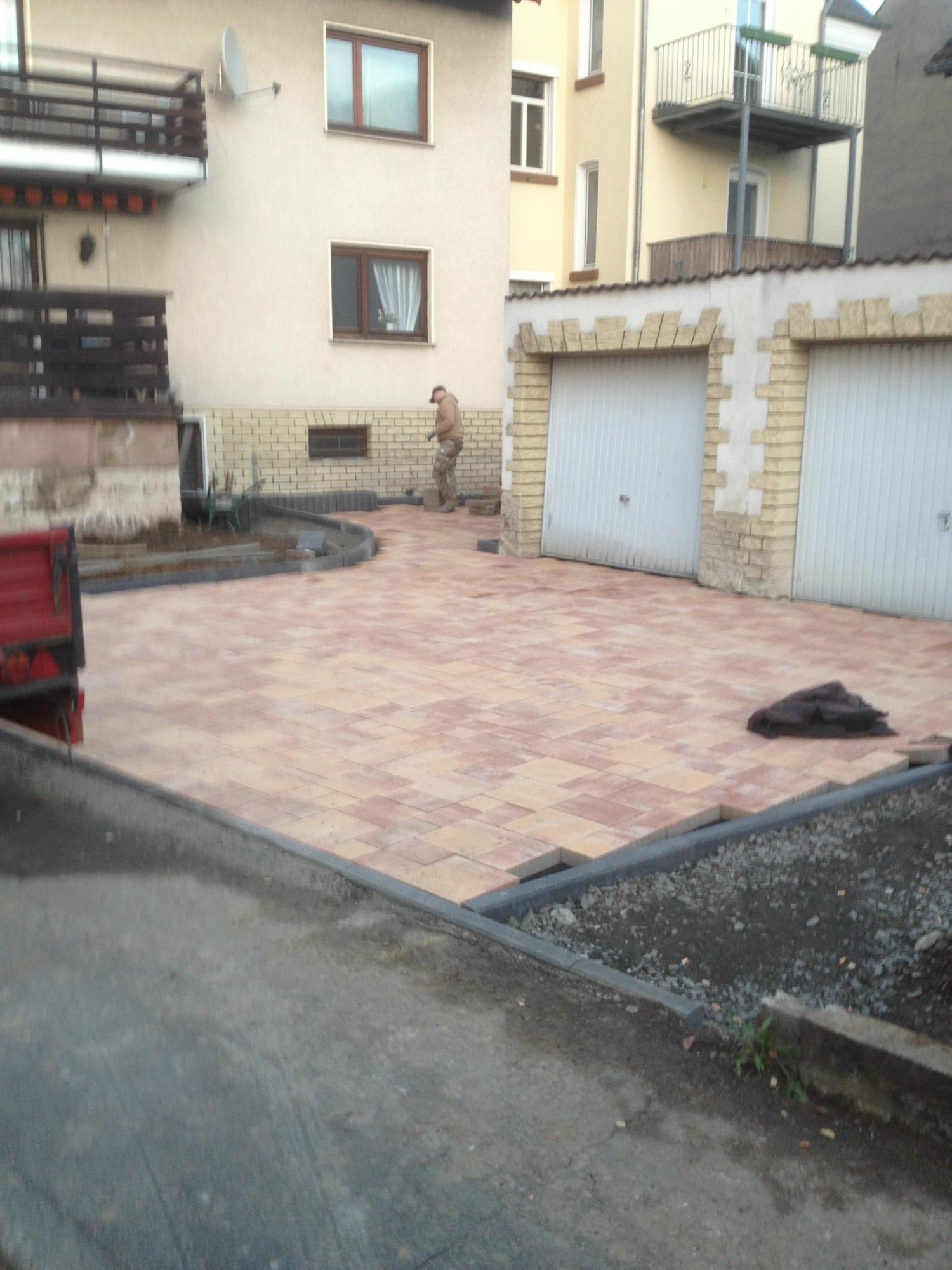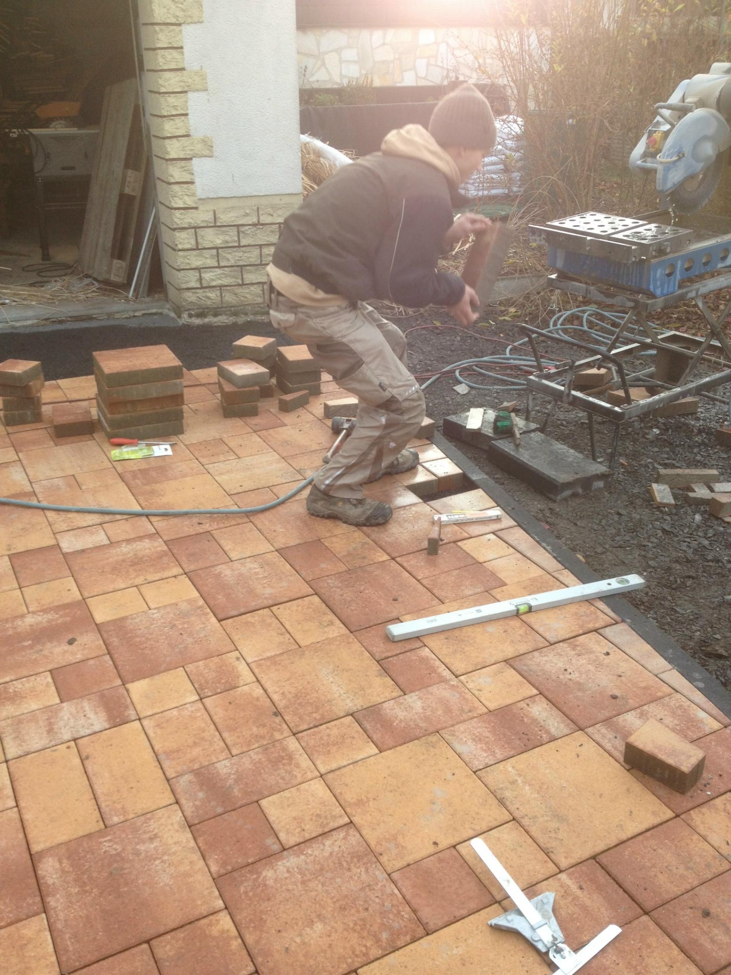 Herstellung mit schönem "Sunset" Pflastersteinen in Mehrgrößen