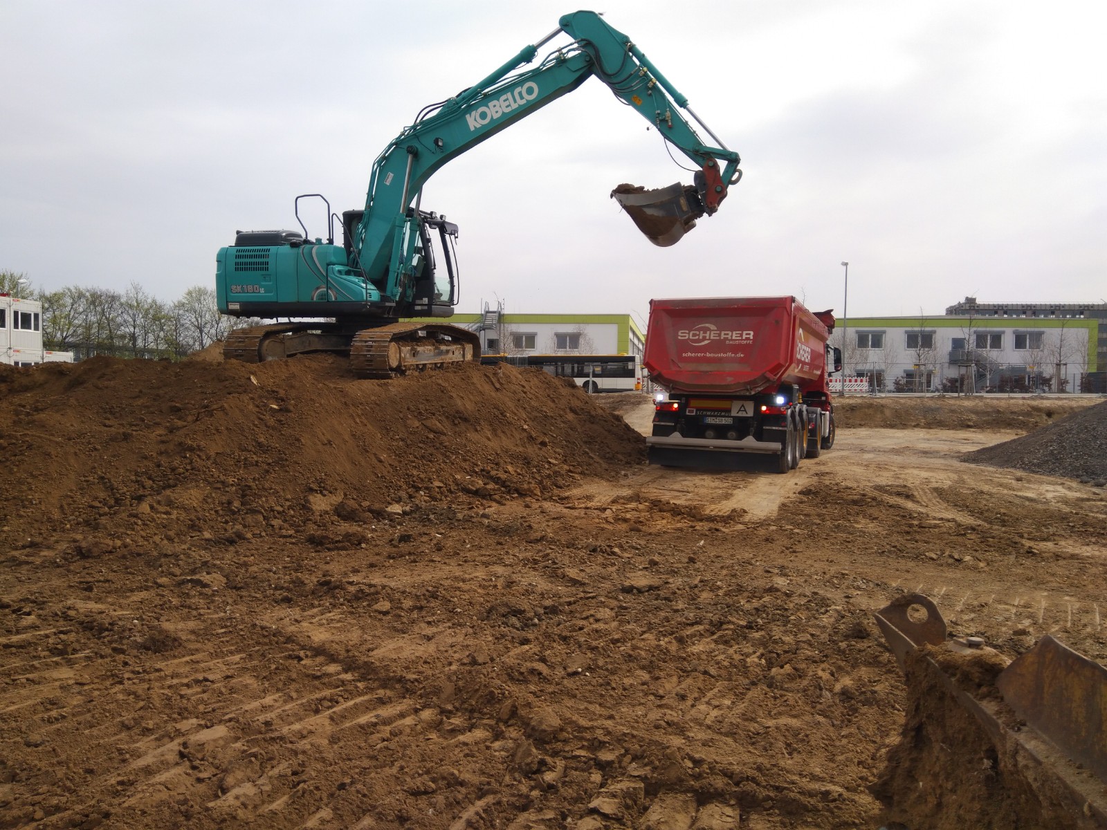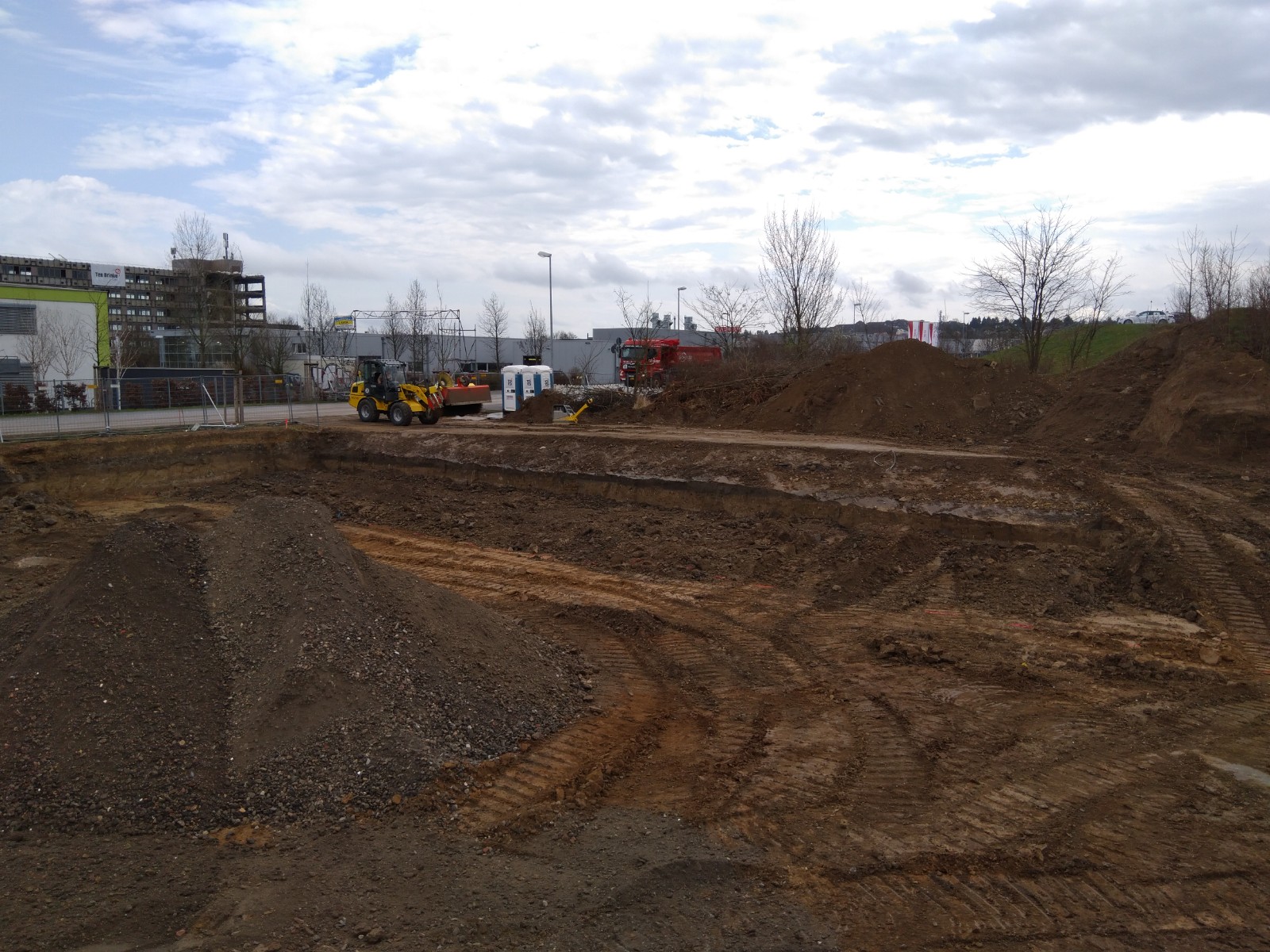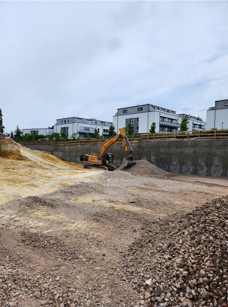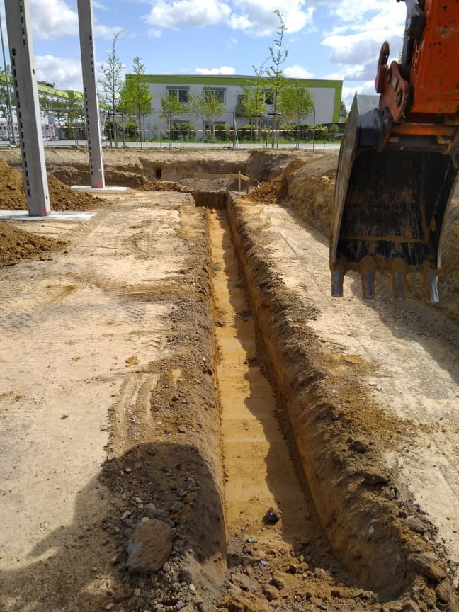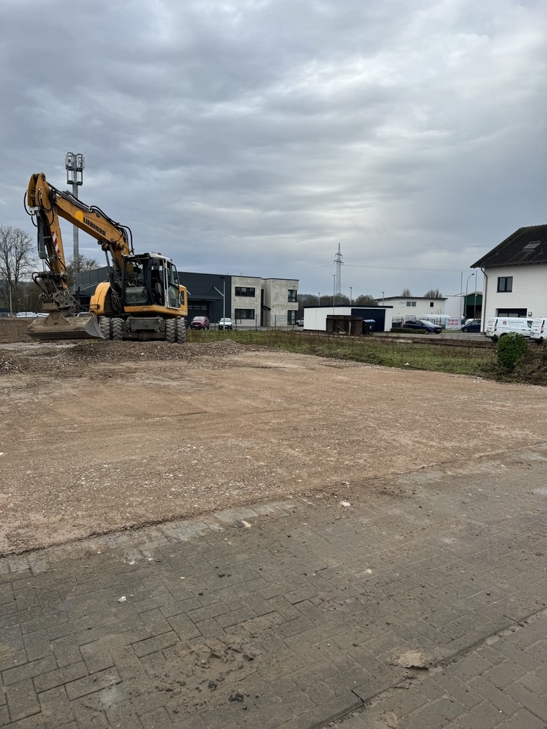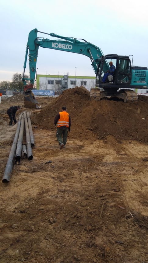 ausheben der komplette Baugrube, herstellen der Fundamente für Betonstützen, einbauen von Tragschichten aus RCL (Recycling)